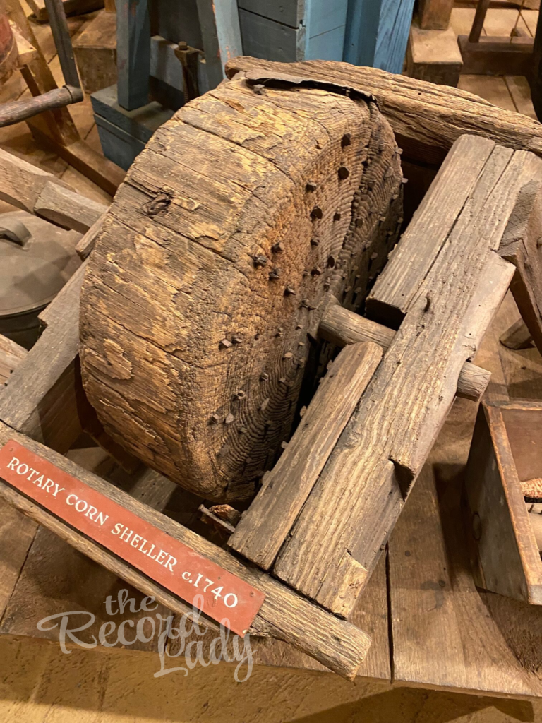 It was time for a fieldtrip to the Eric Sloane Museum in Kent, Connecticut. It contains a fascinating collection of antique American hand tools (and some that worked under oxen, horse and even dog power). It’s fun to see tools that are often mentioned in 18th and 19th century wills. I took a photograph of the Surveyor’s Chains (photo above), an item used for measuring boundary lines in deeds. I could spend hours at this small museum–it’s like a trip back in time!
