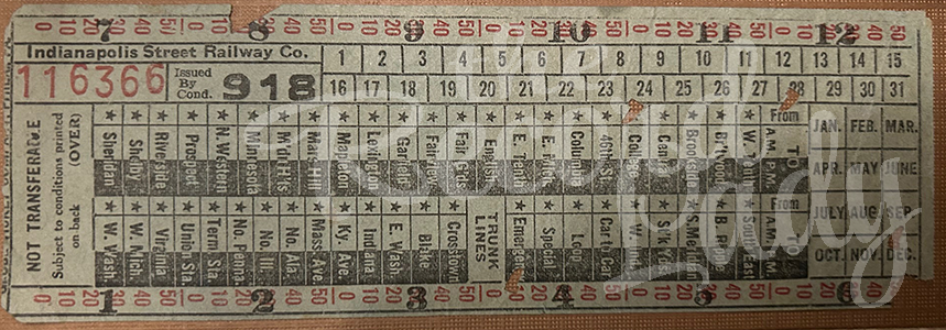 “Indianapolis Street Railway Company, Ticket 116366,” ca. 1925, in the author’s collection, from ephemera part of grandmother’s photograph collection.