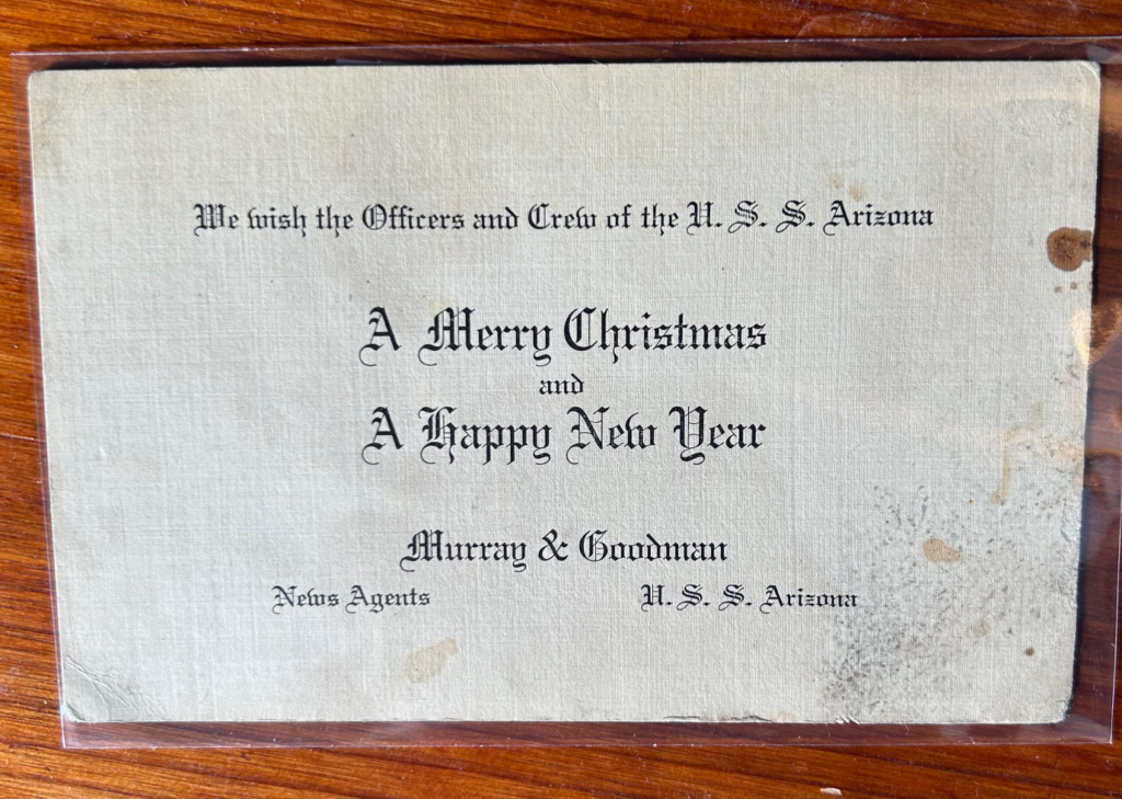 “A Merry Christmas and Happy New Year,” card from the U.S.S. Arizona, in the author’s collection, from grandmother’s photograph collection.