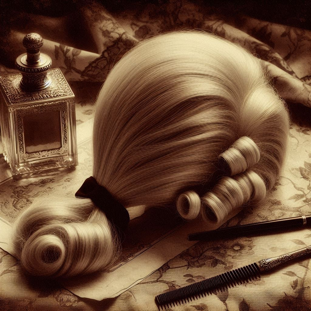 Copilot AI, “Wig and Hairdressing Tools in Sepia Tones,” digital image, 2024.